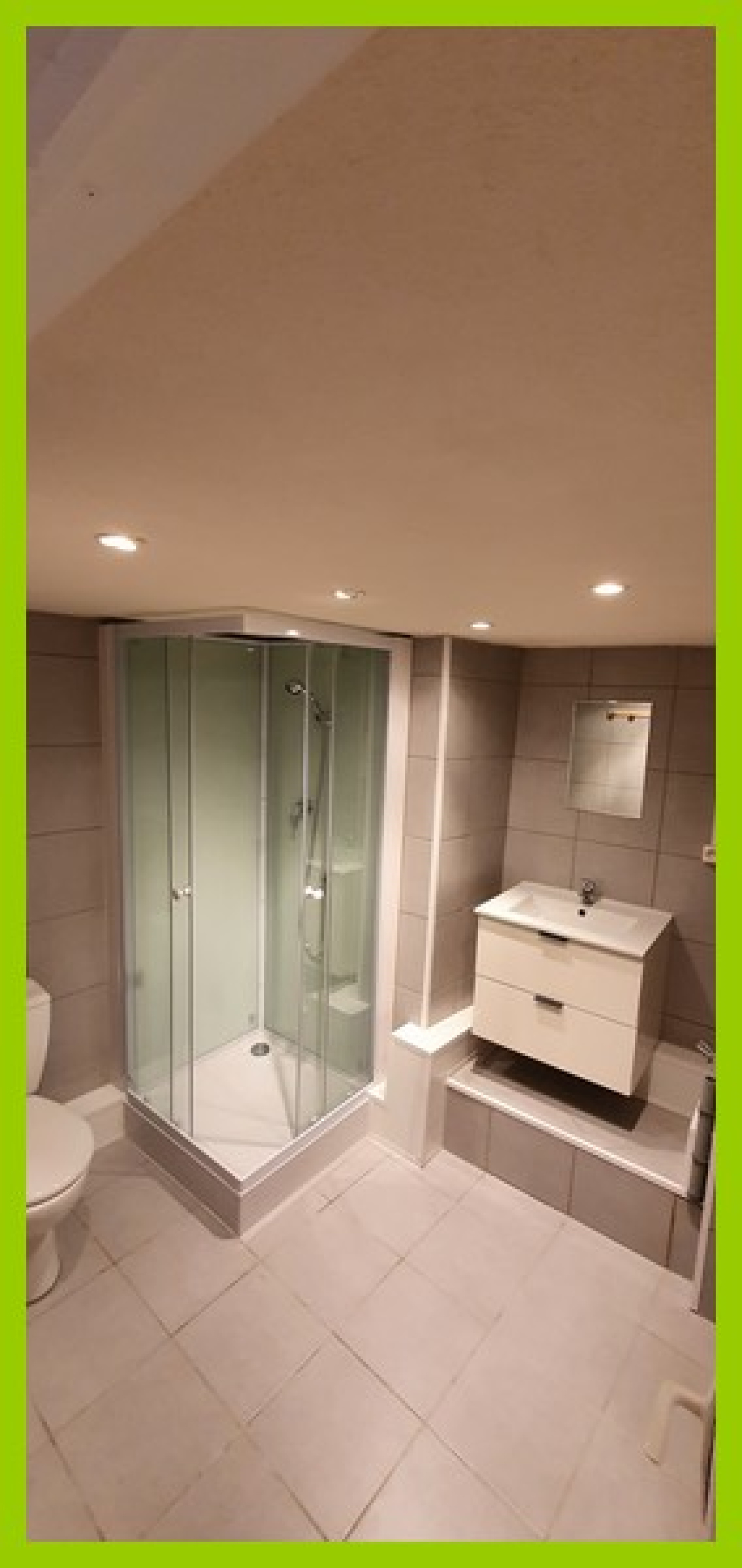 Il comprend: Un séjour avec kitchenette ouverte équipée, une chambre, une salle d’eau avec WC, une cave avec accès privé et une terrasse.