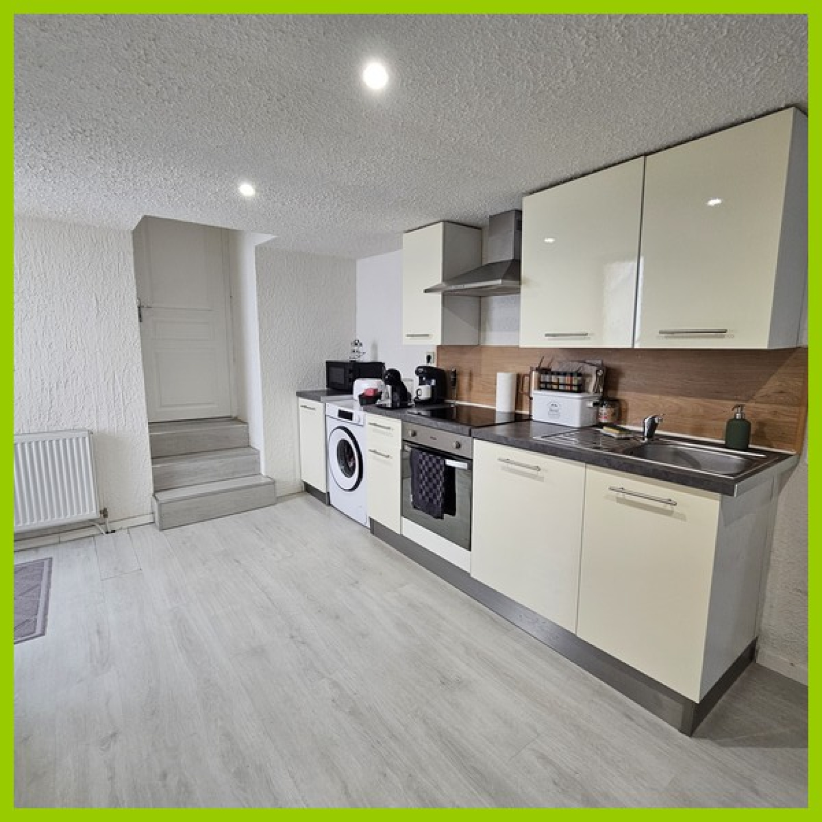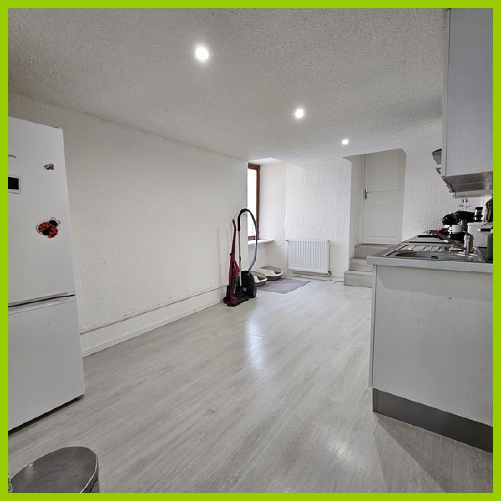 Il comprend: Un grand et lumineux séjour, une cuisine équipée, une chambre, une pièce sans fenêtre, une grande salle d'eau équipée avec WC, une cour commune et local à vélos. Une cave.