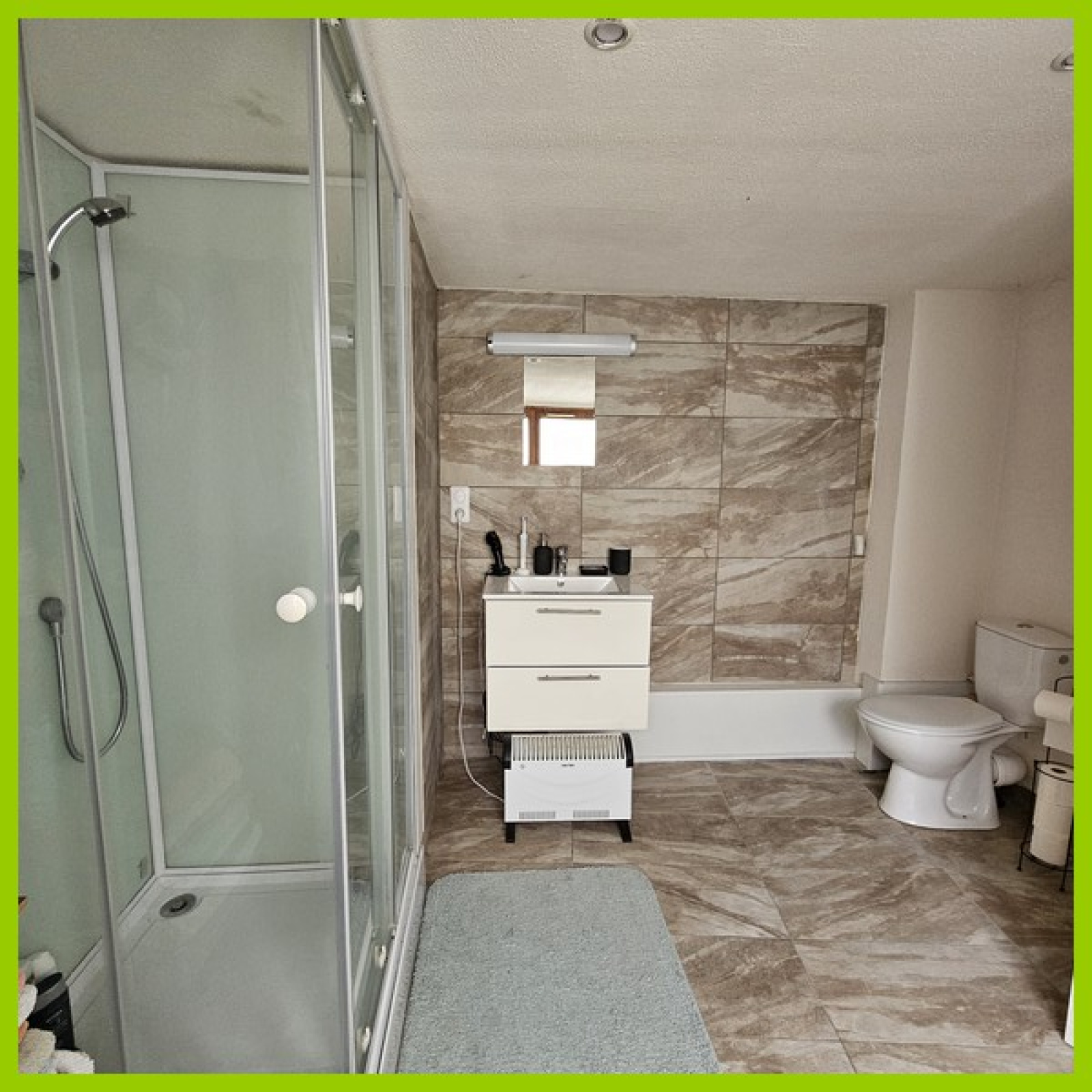 Charges: 100€/mois comprenant le chauffage, l'eau froide/chaude, nettoyage des couloirs et les communs.