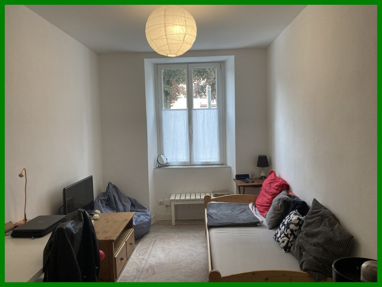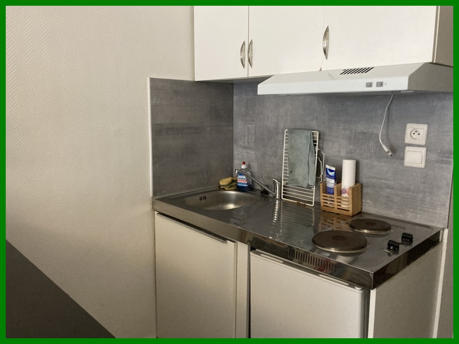Il comprend: 1 entrée, 1 salle d’eau équipée avec wc, 1 pièce de vie avec kitchenette équipée (plaques-frigo), 1 chambre.