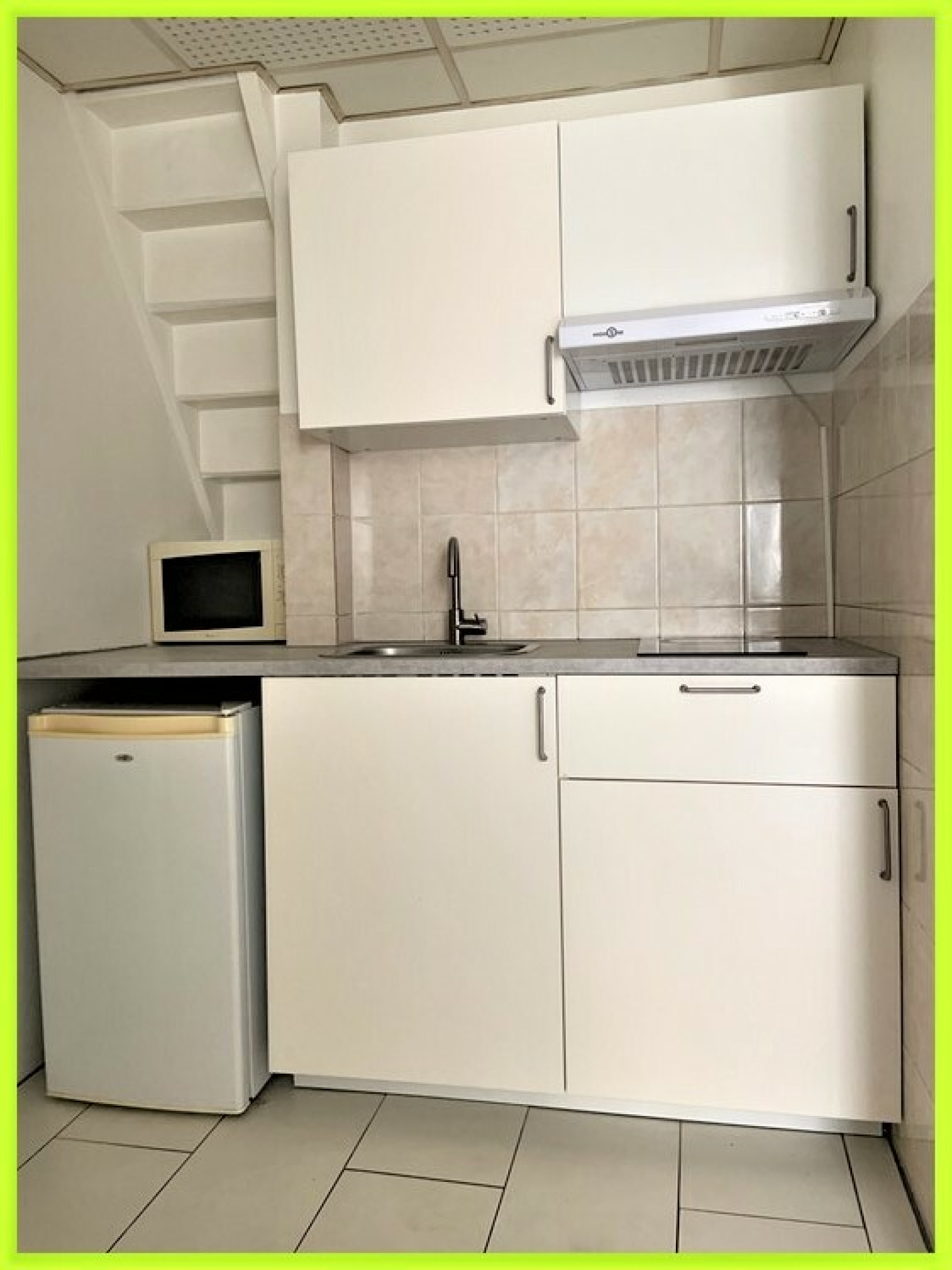 Il comprend: Un séjour avec cuisine ouverte équipée (plaques, hotte, micro ondes, frigo), une chambre, une salle d'eau avec WC et une terrasse commune.