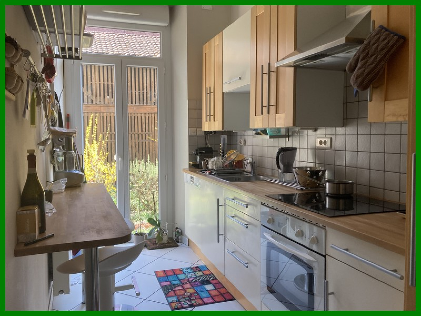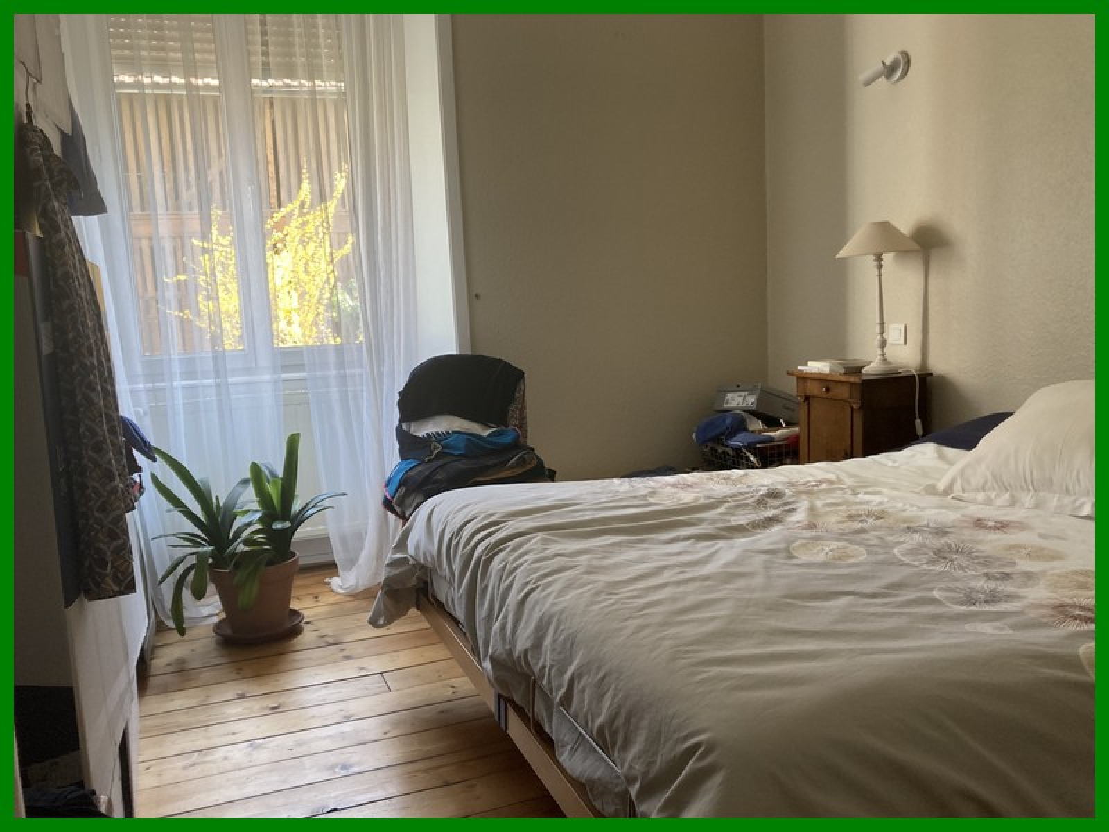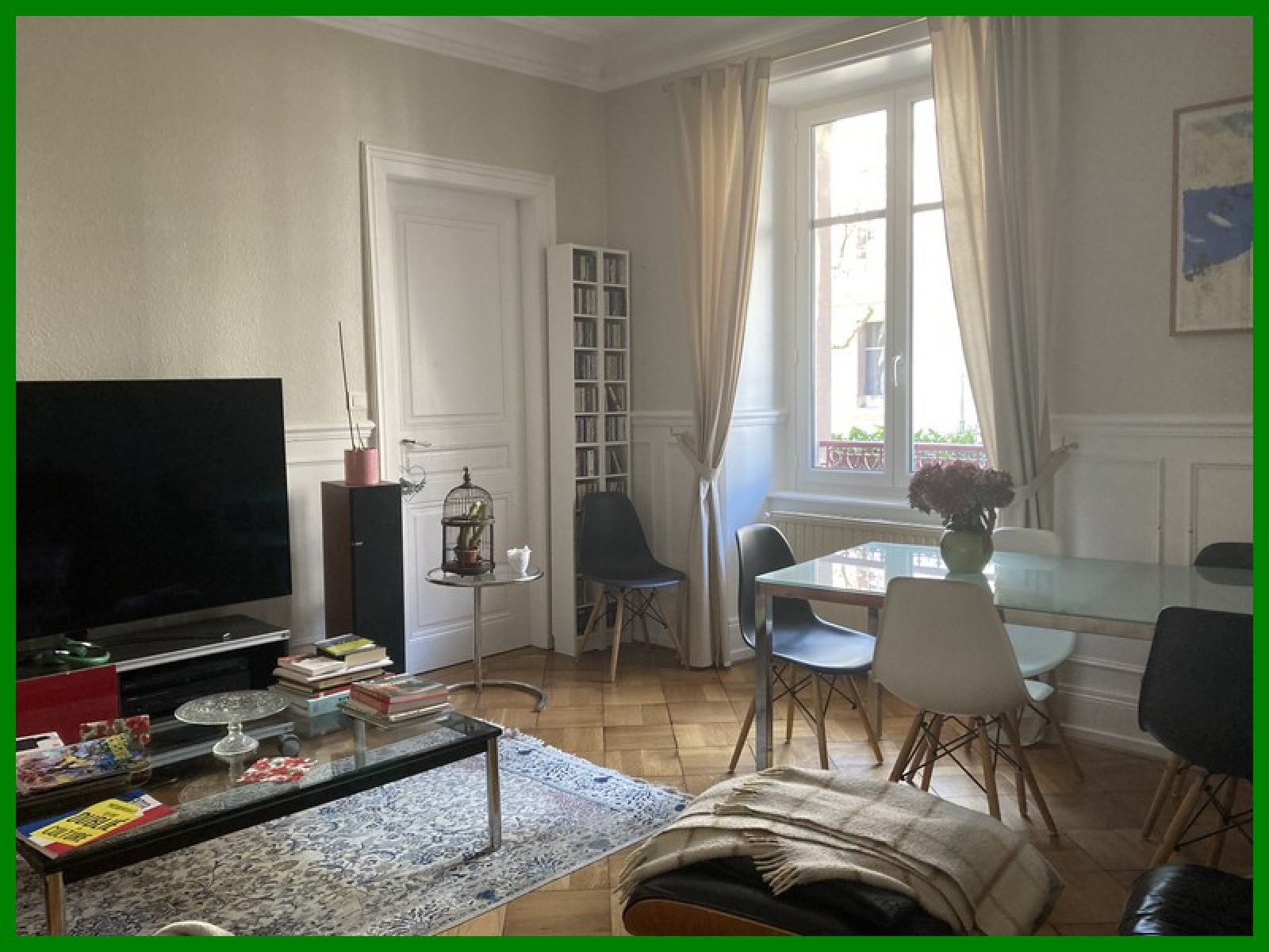 Appartement de type F3 de 70m2 au rez-de-jardin dans un petit immeuble du bas Rebberg. A proximité de la gare, il comprend: 1 grande pièce de vie, 1 cuisine équipée et séparée, 1 salle de bain équipée avec WC, 2 chambres, 1 jardin, une cave. Le chauffage est individuel au gaz, les fenêtres sont en double vitrage PVC.