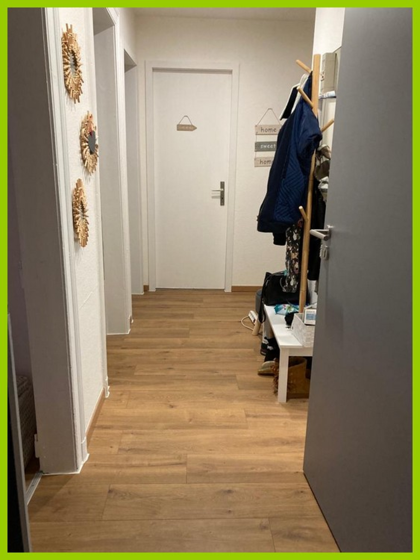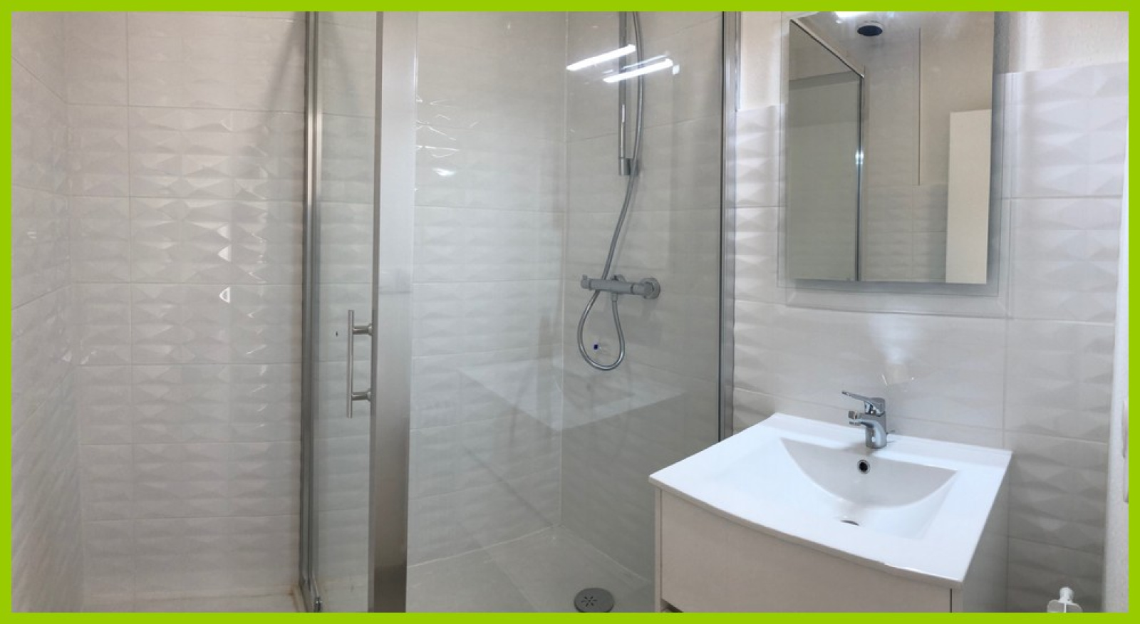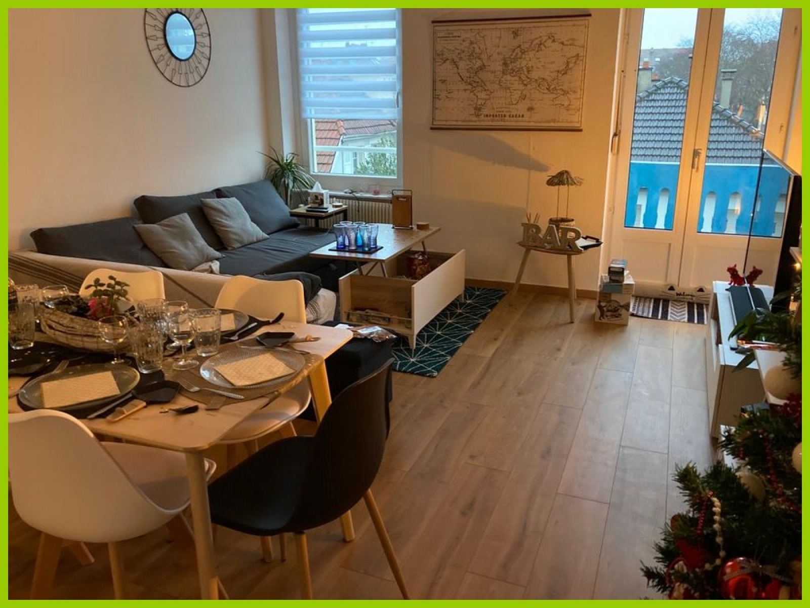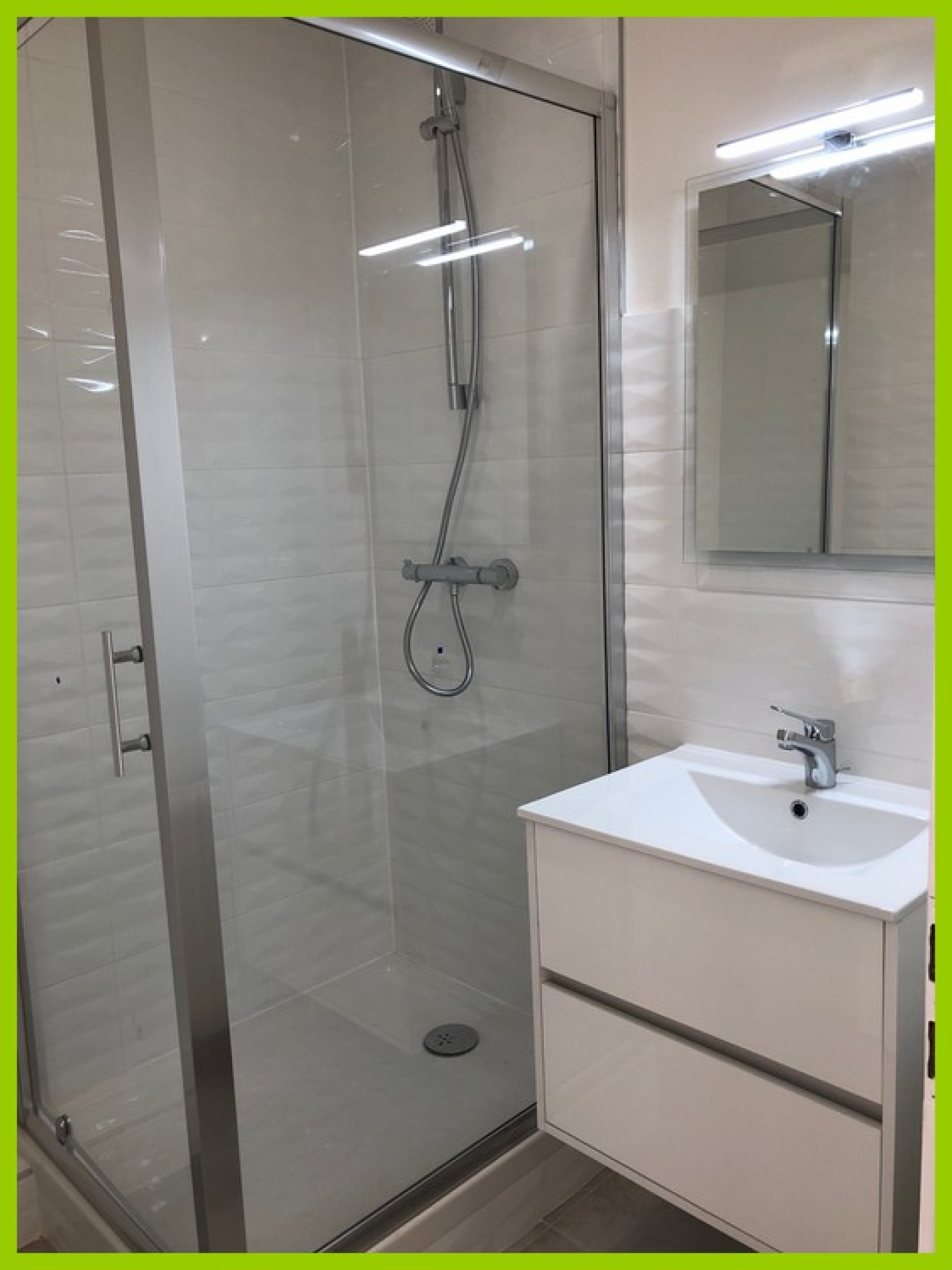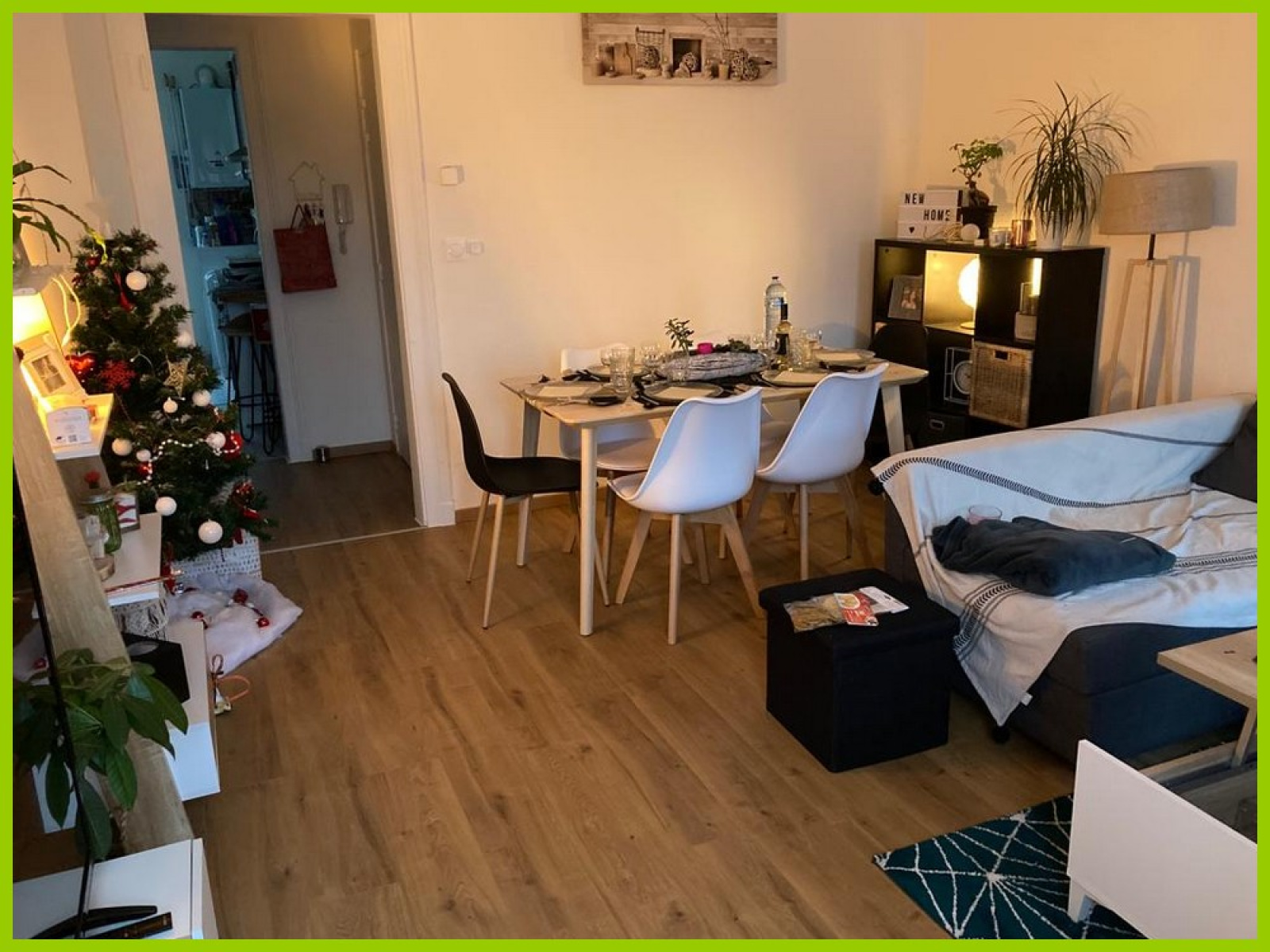 Il comprend: Une entrée, un séjour, une cuisine équipée (four-plaques-hotte), deux chambres, une salle d'eau équipée et un WC séparés.