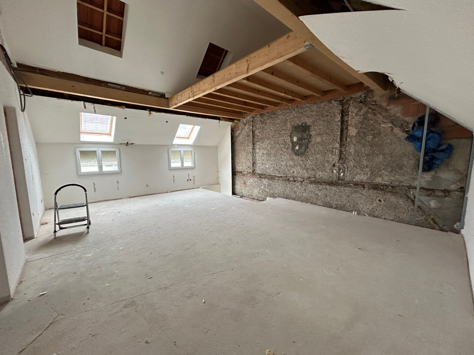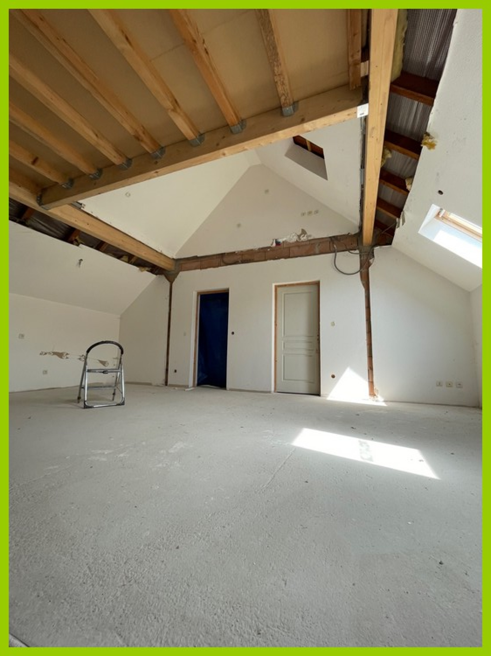 Il y a une partie d'environ 110-120m² dont l'aménagement intérieur complet est à prévoir. C'est vendu brut en l'état. L'électricité, le sanitaire, plaquo, fenêtres etc