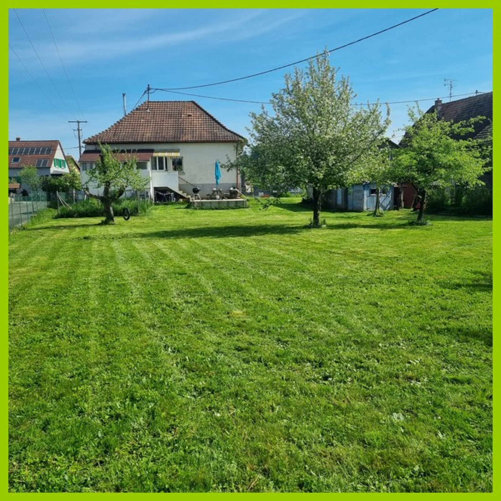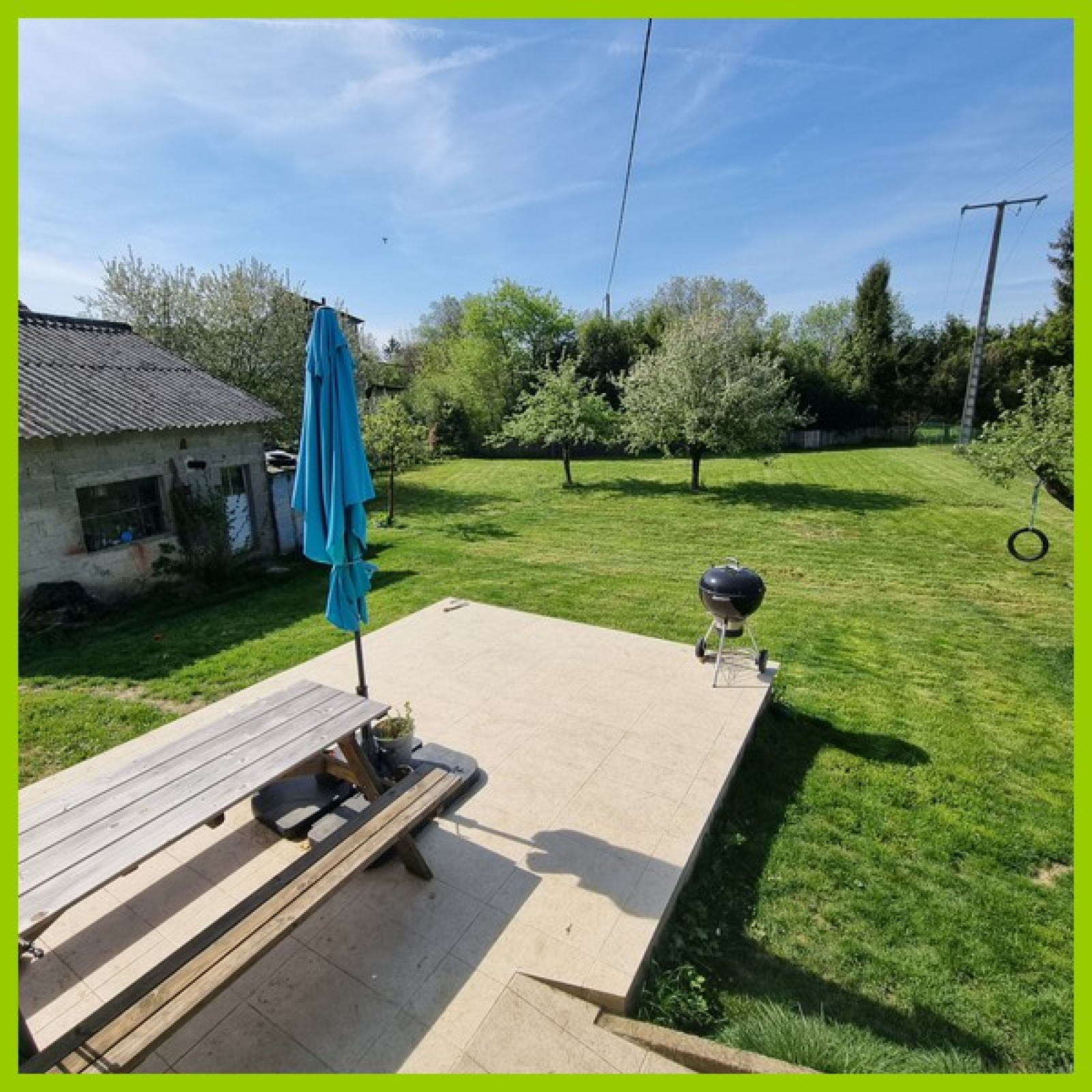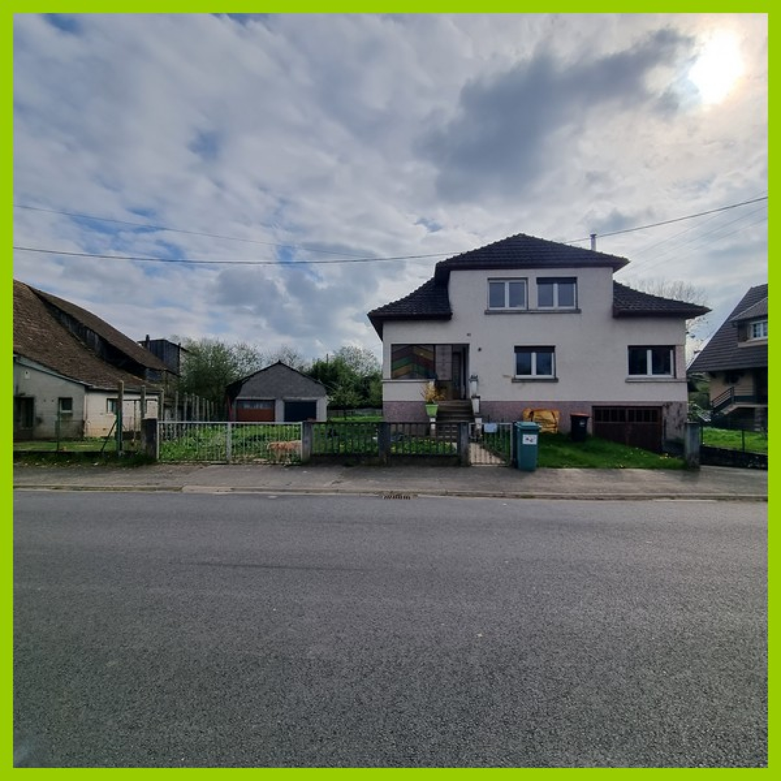 Coté extérieur, le cadre est verdoyant, très bien entretenu avec un jardin sur 14.69 ares et terrasse. Un garage séparé avec fosse, atelier et grenier
