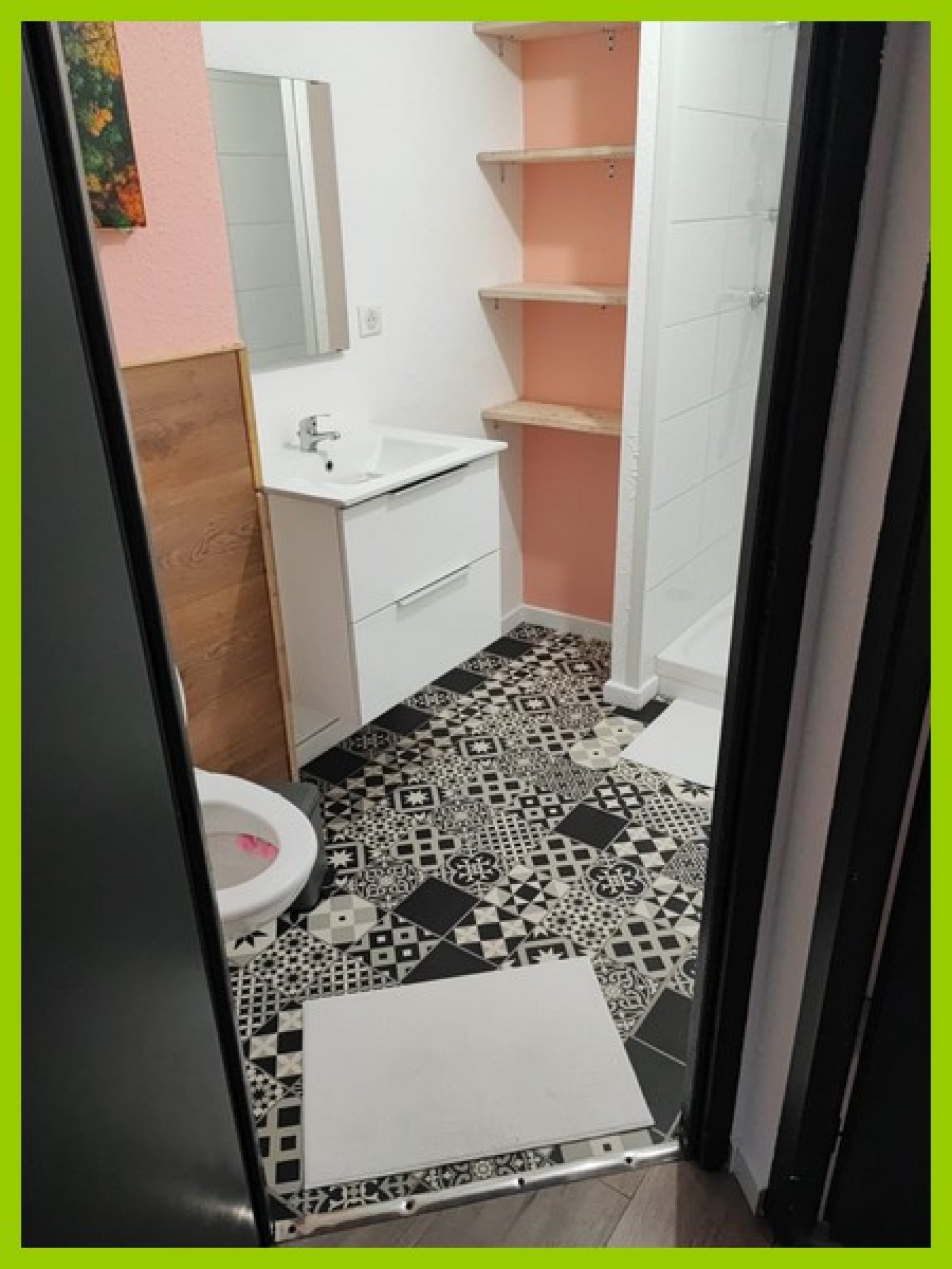Il est composé de 2 F2 et un studio, combles aménageables. Un appartement est loué à 350€ HC ( le studio) et les F2 450€HC. L'immeuble est loué actuellement et les loyers sont de 15000€ HC/an.