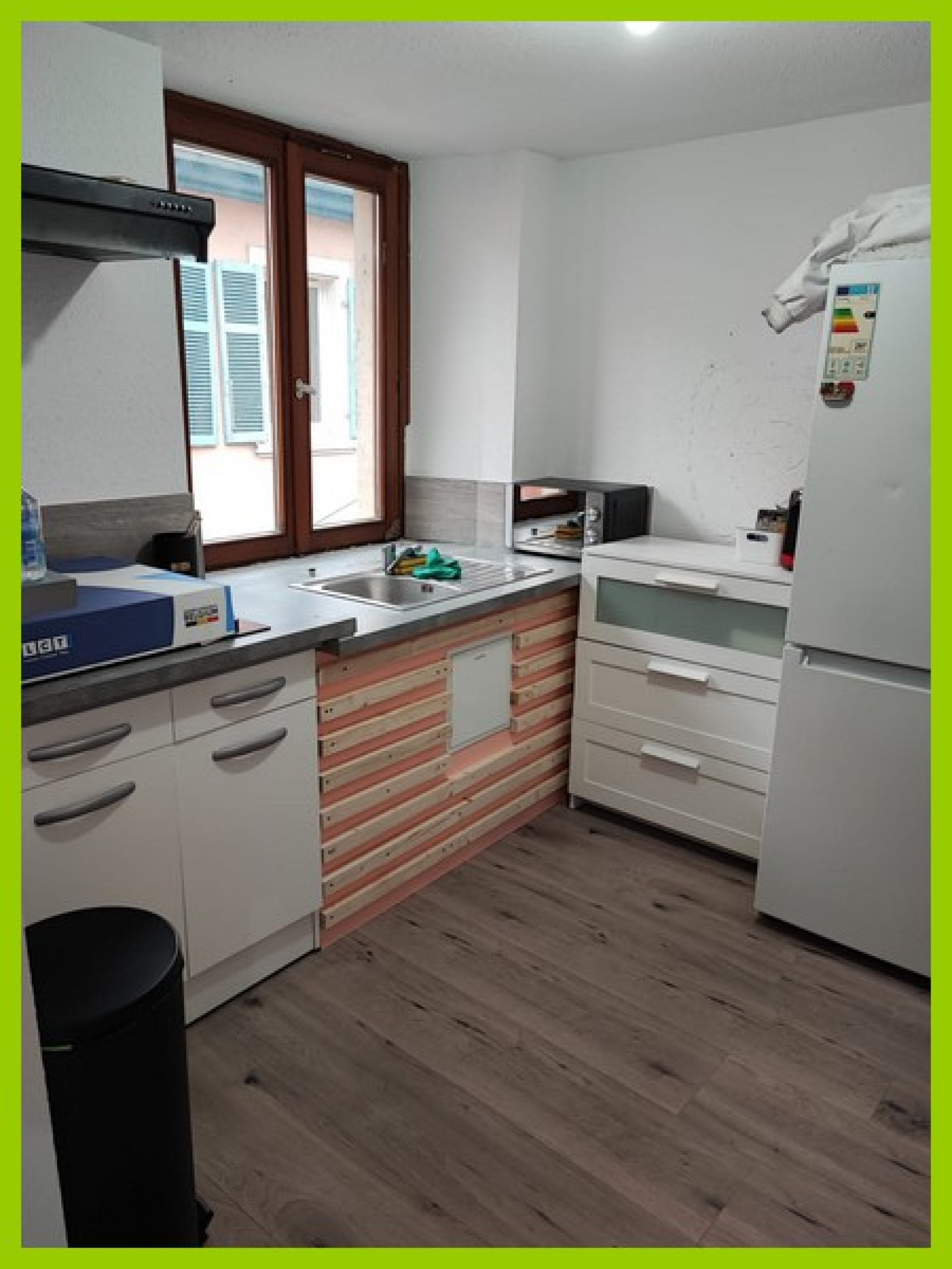 Joli immeuble entièrement rénové de 74m2 avec 3 appartements situé au centre ville de Thann dans une impasse.