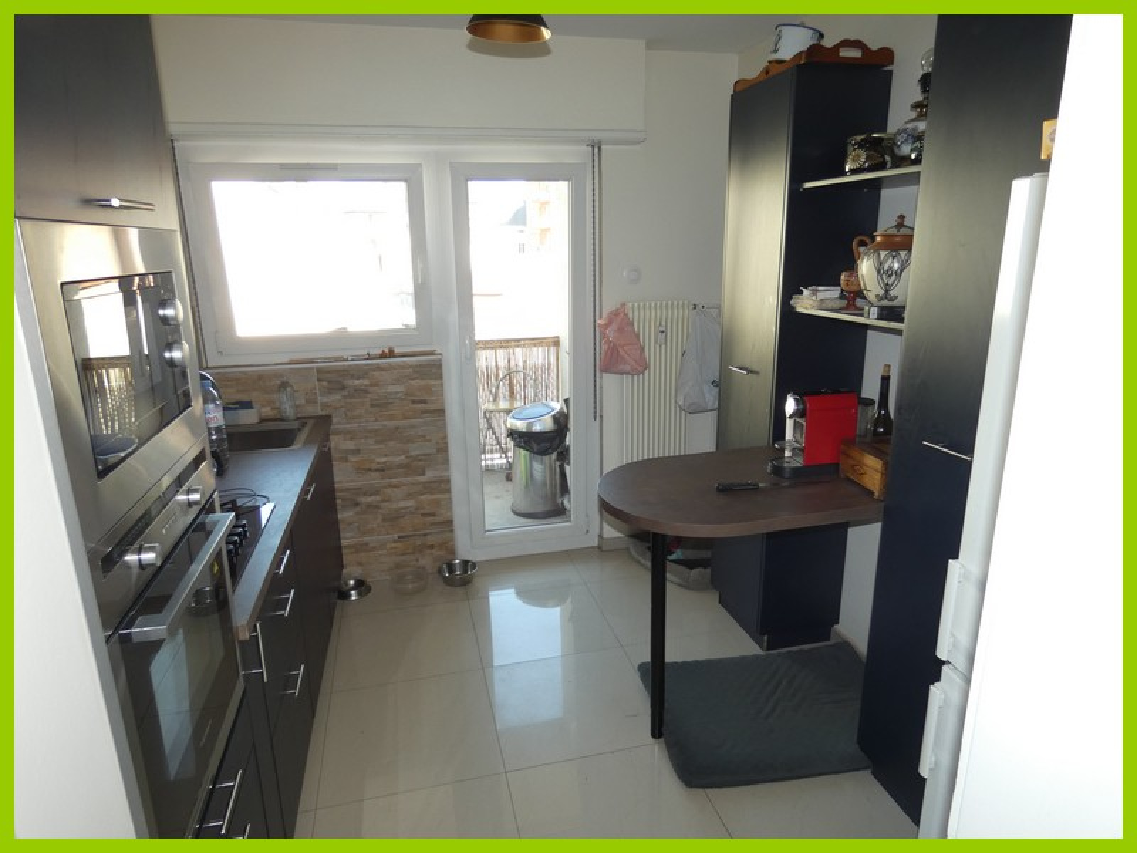 Sa cuisine totalement équipée de 9 m² accède à un autre balcon, orientée Ouest ( ensoleillé des après-midis au soir ). Une salle de bain 10 m², superbe ! avec douche, type, à l’italienne. Un wc séparé. Une belle cave, propre.