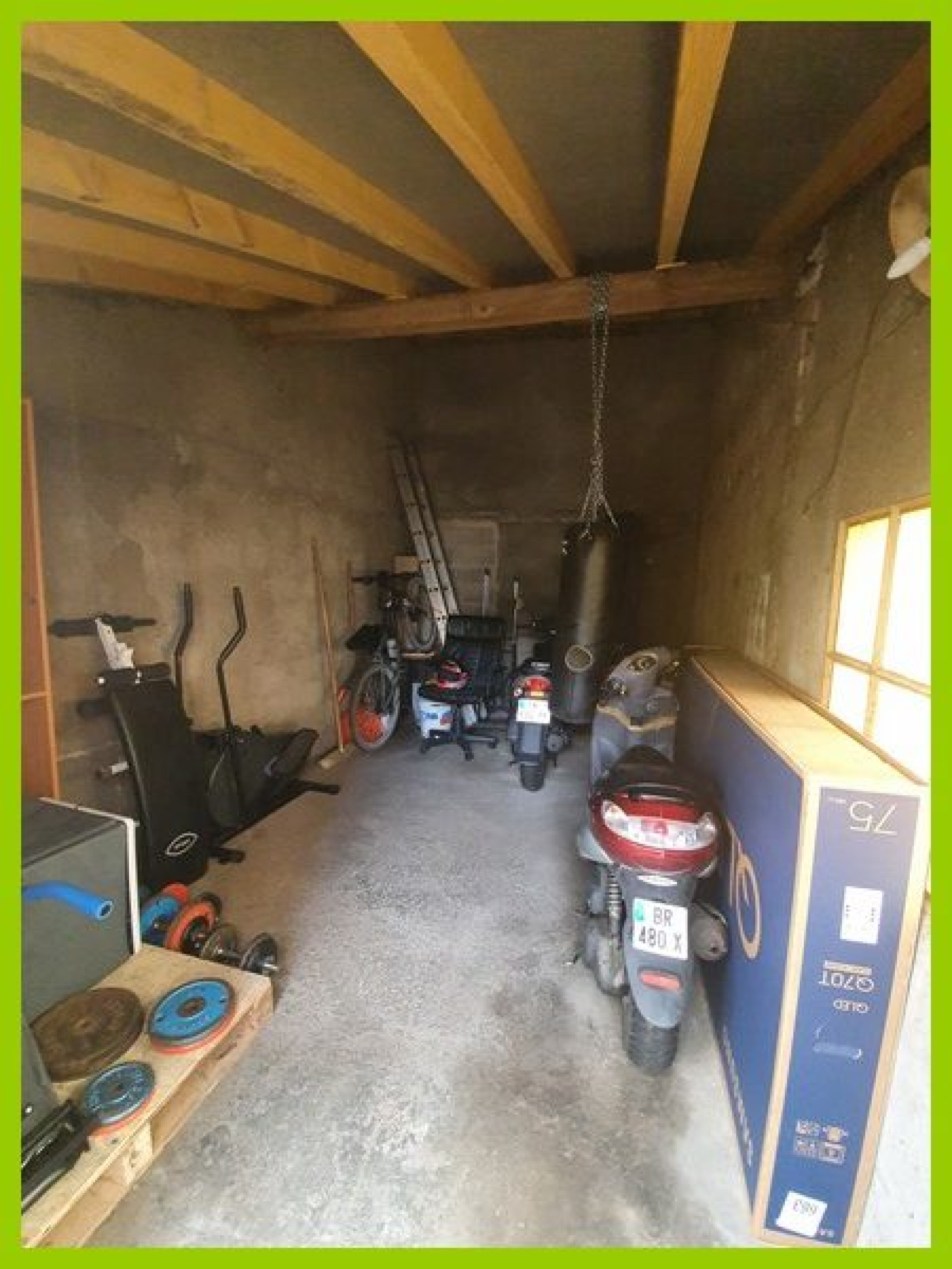 Il comprend: 1 entrée, 1 cuisine équipée, 1 séjour de 32m², 1 chambre, 1 salle d’eau équipée avec wc, 1 cellier, 1 cave, 1 garage moto/scooter pouvant être transformé en 2ème chambre.