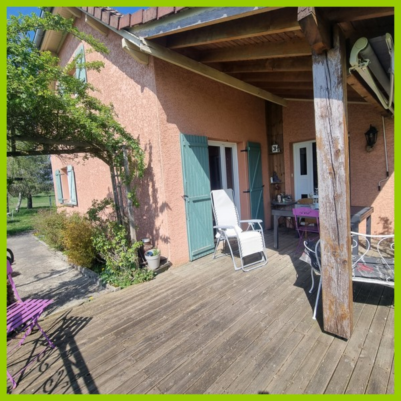 Avec la maison il y a un terrain de 12 ares. 2 terrasses. Aucun vis à vis.