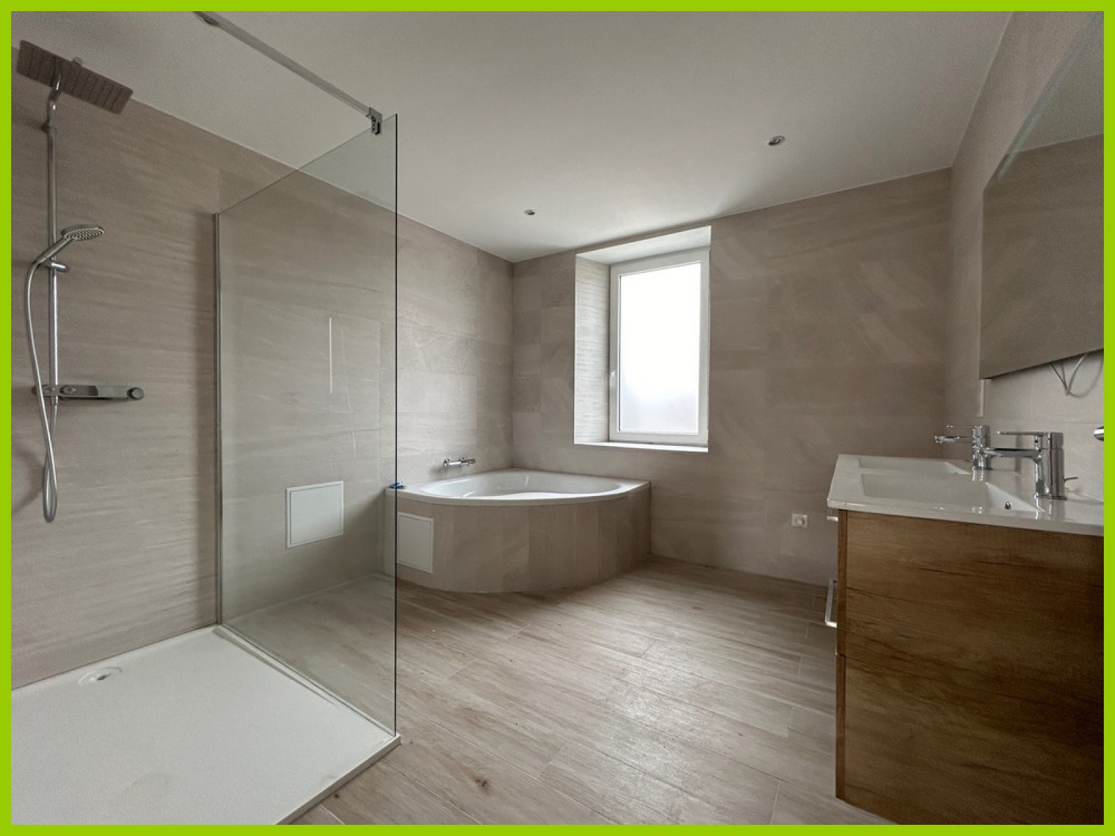 Elle comprend: Au RDC: Une grande entrée, un séjour de 40m², une grande cuisine équipée avec coin repas.